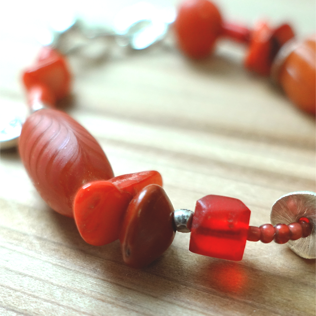 カレンシルバー、アフリカ産とんぼ玉、ローマングラスビーズ、シェルビーズ等
