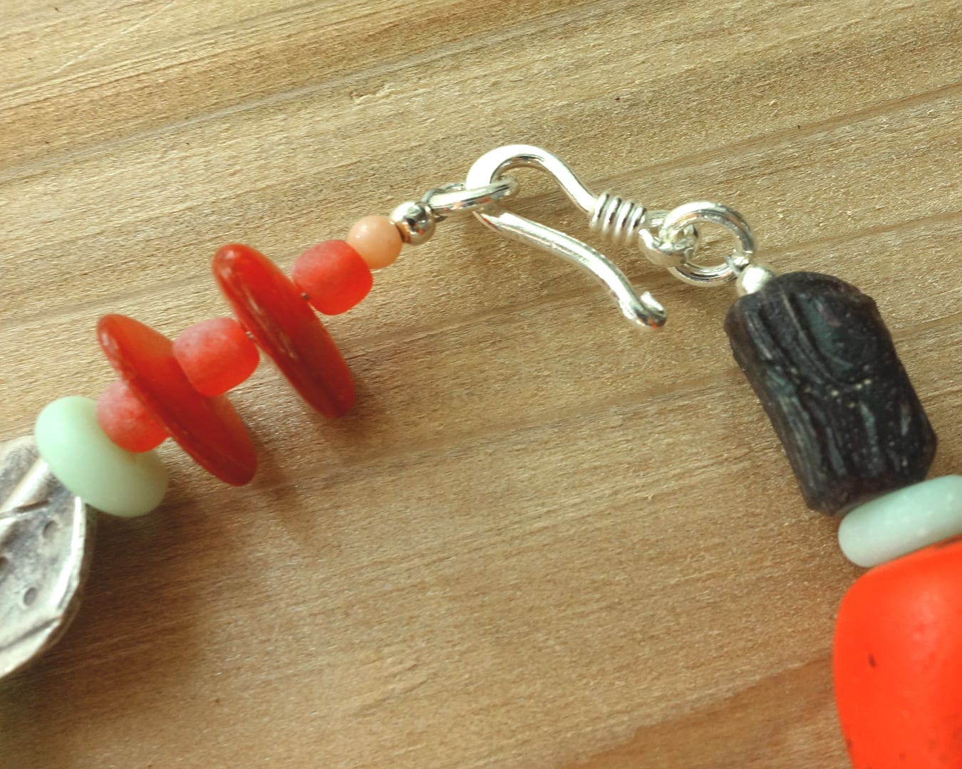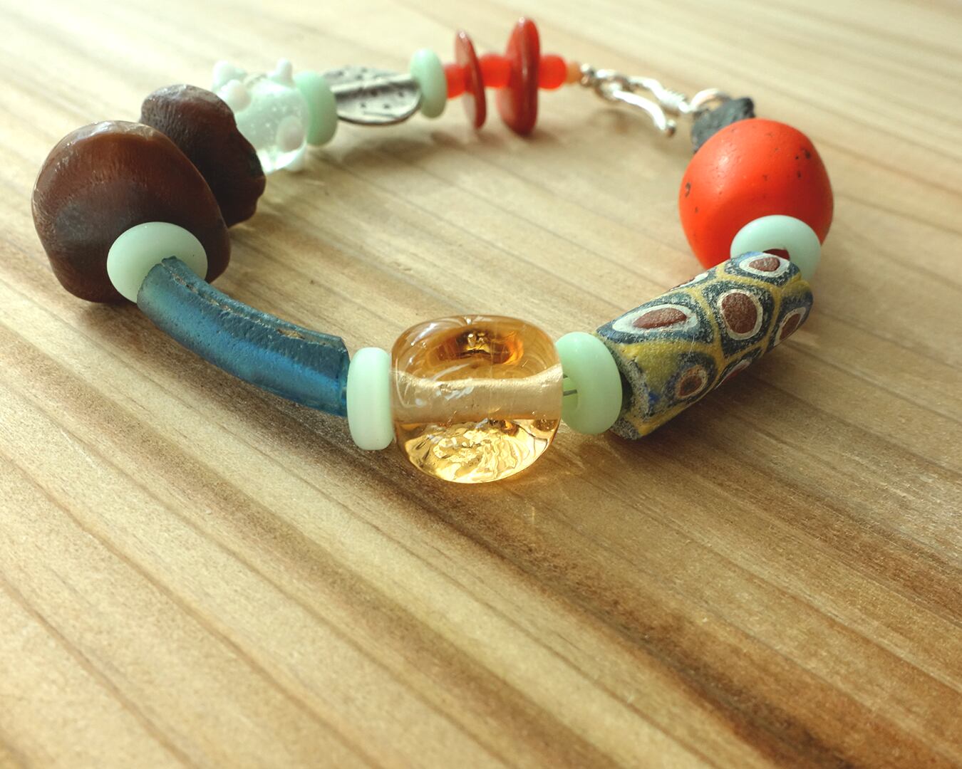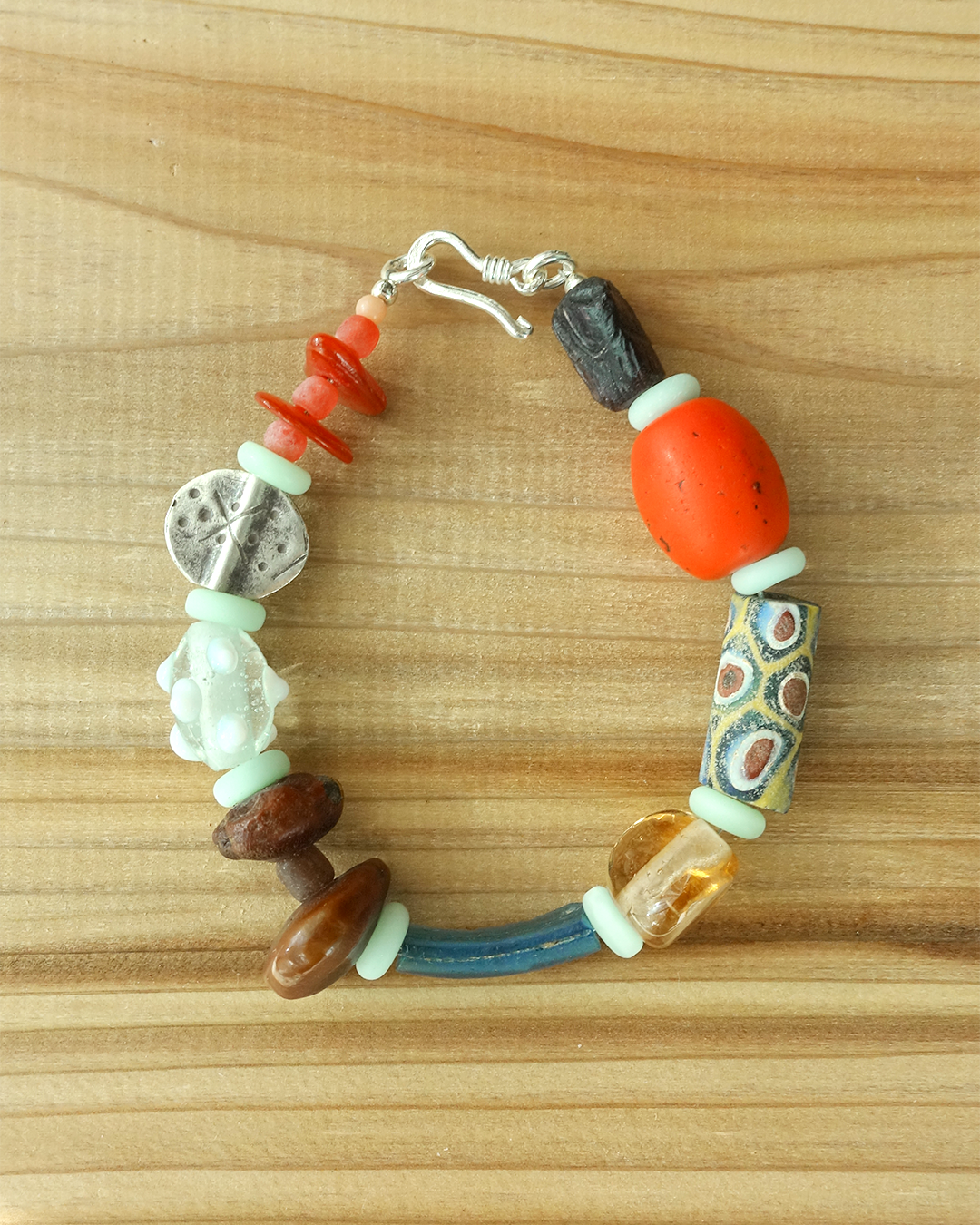 カレンシルバー、アフリカとんぼ玉、ローマングラス、インドネシアのハンドメイドビーズ、真鍮ビーズ、ココナッツ、ウッド等