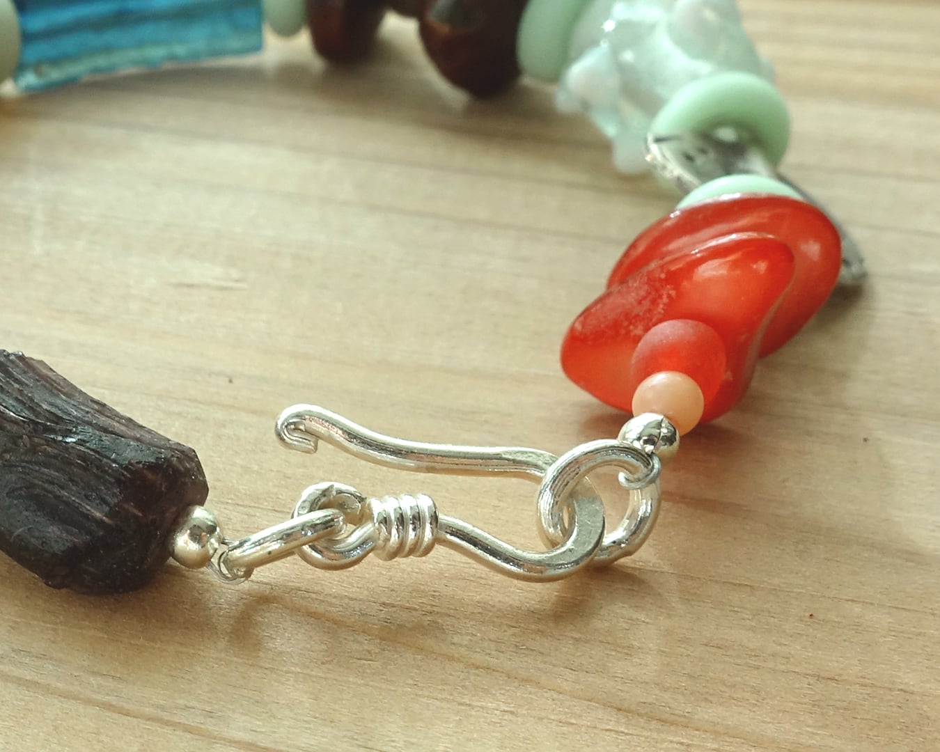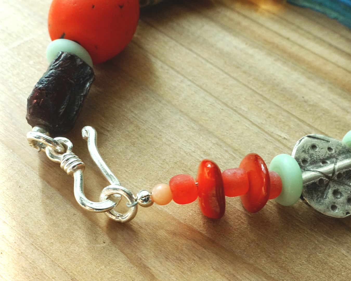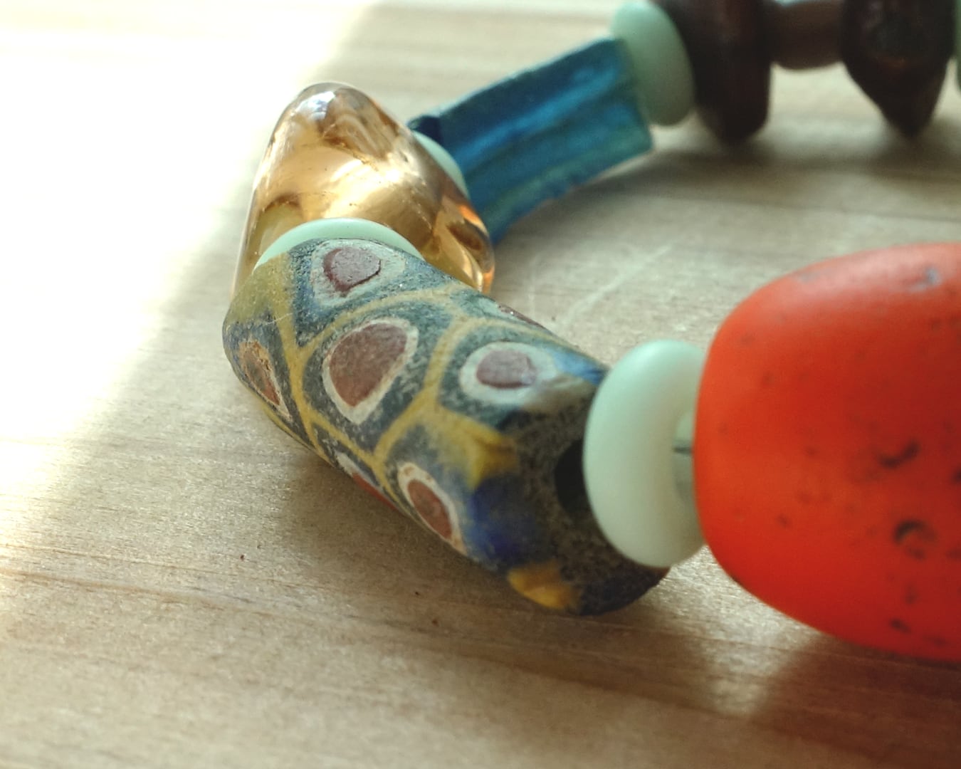 カレンシルバー、アフリカとんぼ玉、ローマングラス、インドネシアのハンドメイドビーズ、真鍮ビーズ、ココナッツ、ウッド等